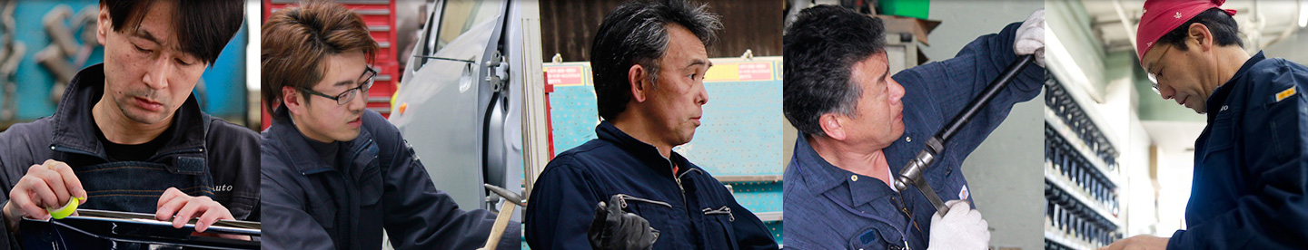 明るく経験豊富なメンバーが集まった板金専門チームです。